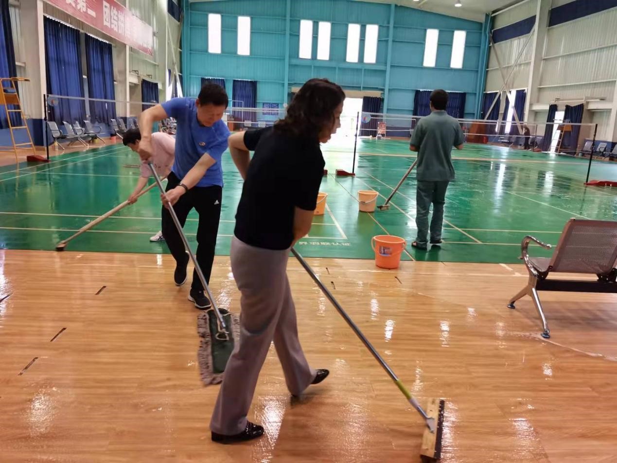 本次活動(dòng)主要對(duì)公司文體中心羽毛球館進(jìn)行拉網(wǎng)式清潔。志愿者們發(fā)揚(yáng)不嫌臟,不怕苦的精神,分組分工進(jìn)行流水式合作。一組志愿者手握刷子,認(rèn)真仔細(xì)地逐排清理著地上的每一點(diǎn)污漬,直到完全清除為止。二組志愿者為防止污水浸泡到縫隙處的木地板,用抹布吸收污水,再集中收集在污水桶里。三組志愿者則負(fù)責(zé)最后一道地板清潔,確保不留下任何一個(gè)衛(wèi)生死角。四組志愿者負(fù)責(zé)門窗玻璃的清潔工作。經(jīng)過2小時(shí)的辛苦勞作,在志愿者們的共同努力下,羽毛球館的環(huán)境煥然一新,館內(nèi)死角盲區(qū)的污漬都被徹底清理干凈。